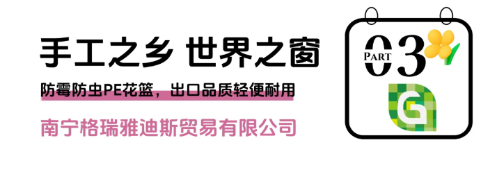 南宁格瑞雅迪斯贸易有限公司主打产品为园艺用花篮,有35年的花篮生产经验,15年外贸经验。所属工厂坐落于人杰地灵的广西横县百合镇,是传统的手工编织产品之乡。