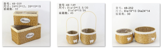 产品质量可靠,款式不断推陈出新,畅销欧美日本等海外市场。目前,公司主推PE材料花篮,规格统一,无生虫发霉的隐患,耐储存,广受市场好评。